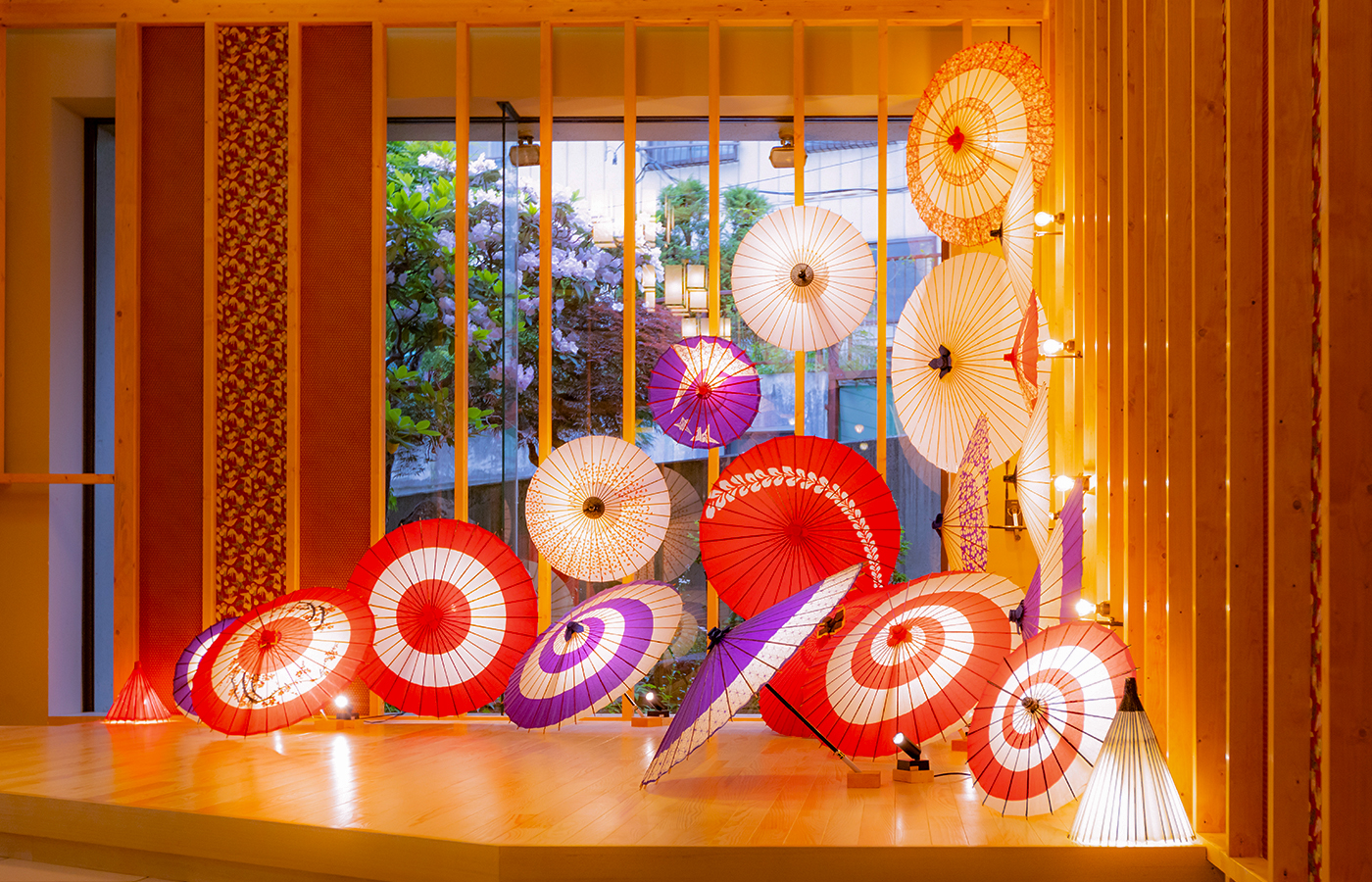 色鮮やかな和傘が織りなす、華やかな写真スポット。旅の思い出に、ここで特別な一枚をどうぞ。