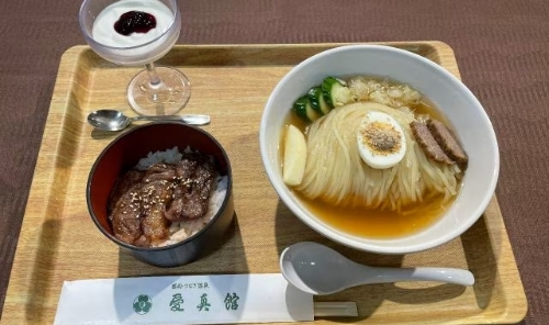 Cコース:昼食「盛岡冷麺と県産黒毛和牛のミニカルビ丼」選べるお土産付き